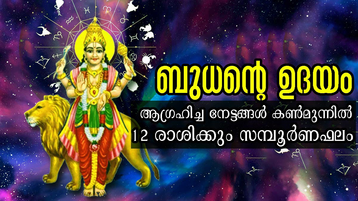 ബുധന് വ്യാപാരം, ആശയവിനിമയം, വിദ്യാഭ്യാസം എന്നിവയുടെ ഭാവത്തിലാണ് തിളങ്ങുന്നത് അതുകൊണ്ട് തന്നെ ബുധന്റെ ഓരോ മാറ്റവും പല വിധത്തിലുള്ള സ്വാധീനം പലരിലും ചെലുത്തുന്നു. എന്തൊക്കെയാണ് ഇത്തരത്തില് ബുധന് 12 രാശിക്കാര്ക്കും ഉദയത്തിലൂടെ കാത്തു വെച്ചിരിക്കുന്നത് എന്തൊക്കെ ശുഭയോഗങ്ങളാണ് ഉണ്ടാവുന്നത് എന്ന് നമുക്ക് നോക്കാം. കൂടുതല് അറിയുന്നതിന് വേണ്ടി ഈ ലേഖനം വായിക്കാം.