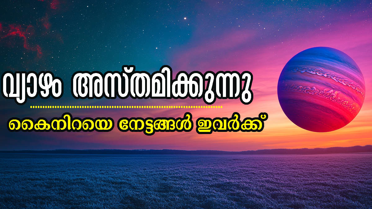 ഗുരു വ്യാഴം ജൂണ് 12-ന് വൈകുന്നേരം മിഥുനം രാശിയില് അസ്തമിക്കുന്നു. 27 ദിവസത്തിന് ശേഷം ജൂലൈ 9-ന് വ്യാഴം മിഥുനം രാശിയില് തന്നെ ഉദിക്കുകയും ചെയ്യുന്നു. ഇത് 12 രാശിക്കാരില് 3 രാശിക്കാര്ക്ക് അനുകൂലമായ പല മാറ്റങ്ങള് കൊണ്ട് വരുന്നു. സാമ്പത്തികനേട്ടങ്ങള്ക്കൊപ്പം തന്നെ ബിസിനസിലും ജോലിയിലും മികച്ച മാറ്റങ്ങള് കൊണ്ട് വരുന്നതിന് സഹായിക്കുന്നു വ്യാഴത്തിന്റെ അസ്തമയം. ഏതൊക്കെ രാശിക്കാര്ക്കാണ് ഗുണാനുഭവങ്ങള് നല്കുന്നത് എന്ന് നോക്കാം.