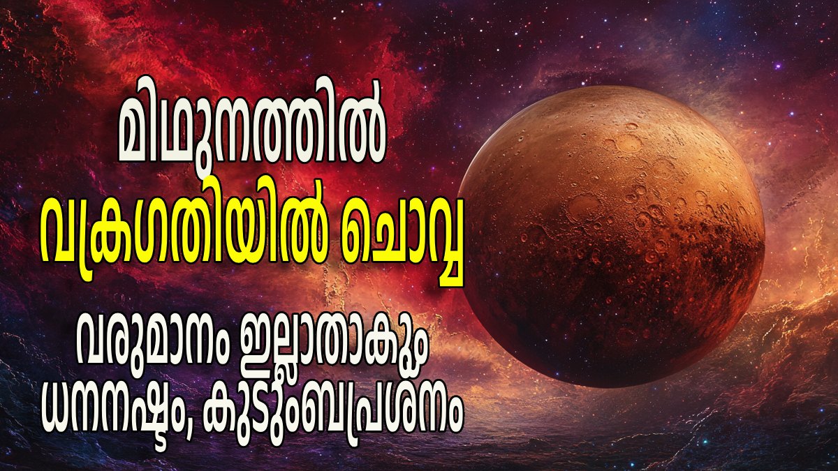 ഗ്രഹങ്ങളുടെ സേനാപതിയെന്നും ഭൂമിപുത്രനെന്നുമാണ് വേദ ജ്യോതിഷത്തില് ചൊവ്വ അറിയപ്പെടുന്നത്. ചൊവ്വയുടെ ഒരോ മാറ്റവും പന്ത്രണ്ട് രാശികളിലും ശുഭ ഫലങ്ങളും അശുഭഫലങ്ങളും സൃഷ്ടിക്കും. ജനുവരി 21-ന് ചൊവ്വ കര്ക്കിടകം രാശിയില് നിന്നും മിഥുനം രാശിയിലേക്ക് വക്രഗതിയില് സഞ്ചരിക്കുകയാണ്. ഈ സാഹചര്യത്തില്, ചില രാശികളില് ജനിച്ചവര്ക്ക് ജീവിതത്തില് ചില പ്രതിസന്ധികളും സാമ്പത്തികക്ലേശങ്ങളും ഉണ്ടാകും.