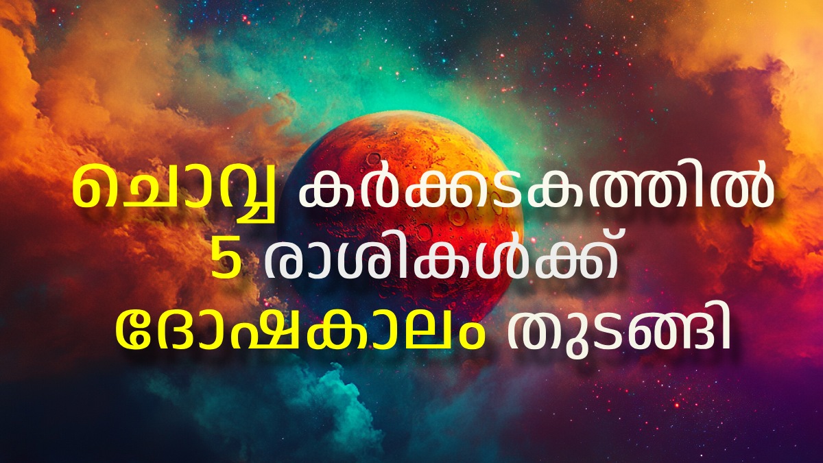 ചൊവ്വ ഇനി നീചരാശിയില്; സൂക്ഷിക്കേണ്ട സമയം. കര്ക്കടകം ഉള്പ്പടെ അഞ്ച് രാശികള്ക്ക് ദോഷകാലം