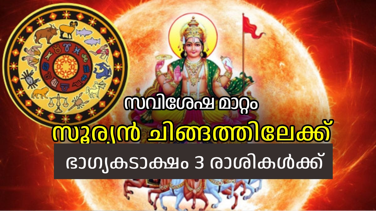 ചിങ്ങം രാശിയിലേക്കുള്ള സൂര്യന്റെ സംക്രമണത്തെ ഏറെ പ്രതീക്ഷയോടെയാണ് ജ്യോതിഷലോകം ഉറ്റുനോക്കുന്നത്. കാരണം ചിങ്ങം രാശി സൂര്യന്റെ സ്വന്തം രാശിയാണ് ചിങ്ങത്തില് സൂര്യന് വിശേഷഫലങ്ങള് നല്കുമെന്നാണ് പ്രവചനങ്ങള്. മണിക്കൂറുകള്ക്കുള്ളില് സൂര്യന് ചിങ്ങം രാശിയിലേക്ക് വന്നെത്തും. രാശിചക്രത്തിലെ 12 രാശികള്ക്കും ഇതിന്റെ നേട്ടങ്ങള് ലഭിക്കും. പക്ഷേ ഏറ്റവുമധികം സൗഭാഗ്യങ്ങളും ശുഭയോഗങ്ങളും ഉണ്ടാകുക ഇനി പറയുന്ന രാശികള്ക്കായിരിക്കും.