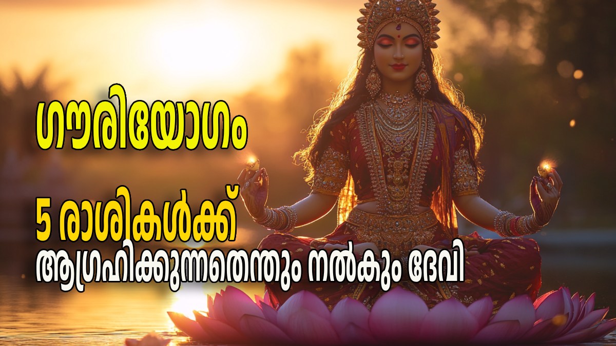 Gauri Yog Blessings for 5 Zodiacs Today: ഫെബ്രുവരി 6 വ്യാഴാഴ്ച, ചന്ദ്രന് ഇടവത്തില് വ്യാഴത്തോടൊപ്പം ഗജകേസരി യോഗം സൃഷ്ടിക്കും. കൂടാതെ, മാഘ് ഗുപ്ത നവരാത്രിയുടെ ഒമ്പതാം ദിവസത്തില്, ചന്ദ്രന്റെ ഉച്ചസ്ഥിതിയിലുള്ള സ്ഥാനം ഗൗരി യോഗം രൂപീകരിക്കും. സൂര്യനിപ്പോള് അവിട്ടം നക്ഷത്രത്തിലാണ് ഉള്ളത്. ഇതിലൂടെ ബ്രഹ്മയോഗം ഉണ്ടാകുന്നു. ഈ ശുഭയോഗങ്ങളുടെ ഫലമായി, ഇടവം, കര്ക്കിടകം, കന്നി, വൃശ്ചികം അടക്കമുള്ള രാശികള്ക്ക് ഗൗരി ദേവിയുടെ അനുഗ്രഹം ലഭിക്കും. ഈ രാശികളില് ജനിച്ചവര് കുടുംബജീവിതത്തിലും കരിയറിലും ബിസിനസ്സിലും പുരോഗതി നേടും. ഇവര്ക്കുള്ള കൂടുതല് ജ്യോതിഷഫലങ്ങള് അറിയാം.