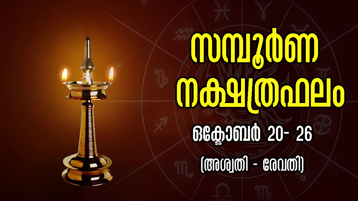 ഒക്ടോബര് 20 മുതല് 26 വരെയുള്ള 7 ദിവസത്തെ ഫലങ്ങളാണ് ഈ ലേഖനത്തില് പറയുന്നത്. ധനപരമായ മാറ്റങ്ങളും ജോലിയിലും കുടുംബത്തിലും പ്രണയത്തിലും ദാമ്പത്യത്തിലും അശ്വതി മുതല് രേവതി വരെയുള്ള 27 നക്ഷത്രക്കാര്ക്കും എപ്രകാരമാണ് മാറ്റങ്ങളുണ്ടാവുന്നത് എന്ന് നമുക്ക് നോക്കാം. കൂടുതല് അറിയാന് വായിക്കൂ.