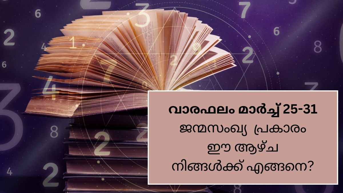ഒരു വ്യക്തി ജനിച്ച തീയ്യതി അടിസ്ഥാനപ്പെടുത്തിയുള്ള ഒരു സംഖ്യയാണ് ആ വ്യക്തിയുടെ ജന്മസംഖ്യ അഥവാ മൂലസംഖ്യ. ഈ സംഖ്യയുടെ അടിസ്ഥാനത്തില് അവരുടെ ജീവിതത്തില് ഉണ്ടാകാന് പോകുന്ന മാറ്റങ്ങള് പ്രവചിക്കാന് സാധിക്കും. ജന്മസംഖ്യ പ്രകാരം മാര്ച്ച് 25 മുതല് 31 വരെയുള്ള ഫലങ്ങള് എന്തൊക്കെയാണെന്ന് നോക്കാം.