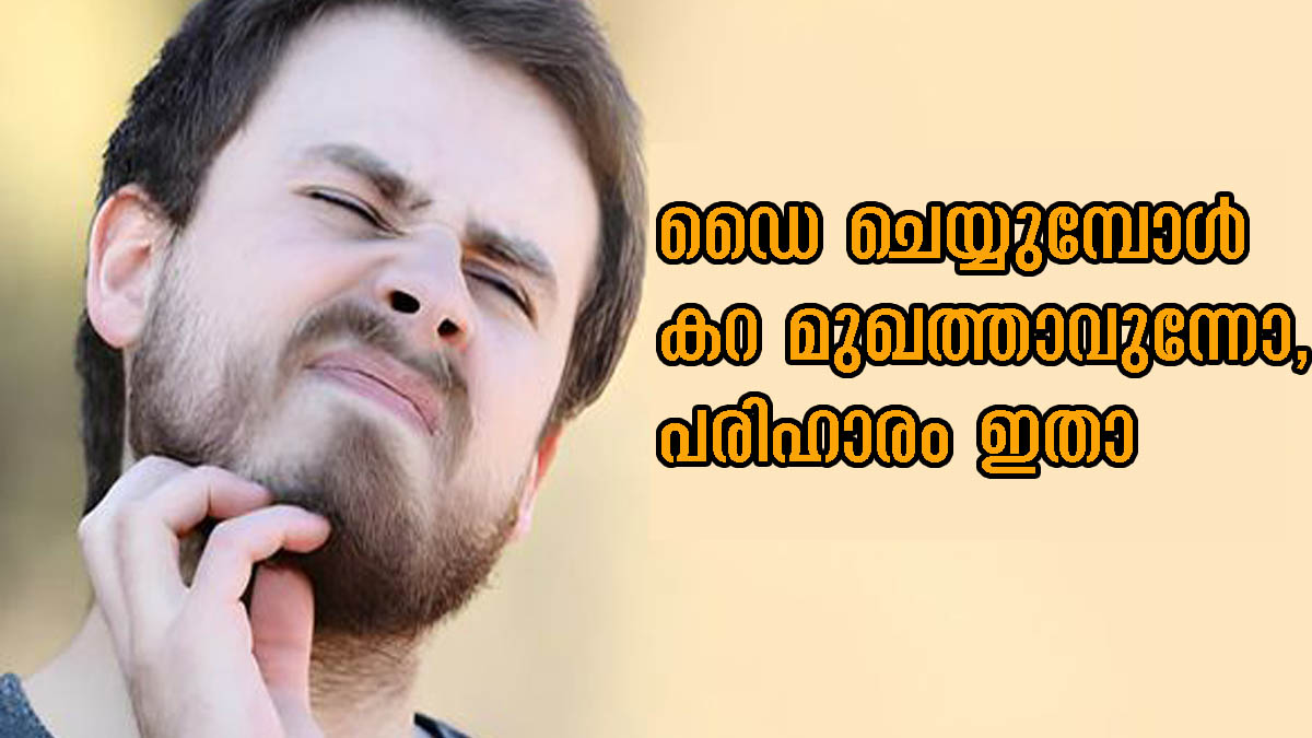താടിയില് ഡൈ ചെയ്യുമ്പോള് ഉണ്ടാവുന്ന ഇത്തരം ചായങ്ങള് ചര്മ്മത്തില് നിന്ന് ഉടന് തന്നെ തുടച്ച് മാറ്റുക എന്നതാണ് ശ്രദ്ധിക്കേണ്ട കാര്യം. നനഞ്ഞ തുണിയോ പേപ്പര് ടവ്വലുകളോ ഉപയോഗിച്ച് ഇവ തുടച്ച് മാറ്റാവുന്നതാണ്. ഡൈ ചെയ്യുമ്പോള് തന്നെ വളരെയധികം ശ്രദ്ധയോടെ ചെയ്യുക. ഇതല്ലാതെ ചെറിയ ചില പൊടിക്കൈകള് കൊണ്ട് നമുക്ക് ഈ പ്രശ്നത്തെ പരിഹരിക്കാന് സാധിക്കും.
