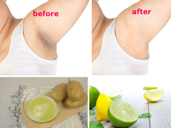 ചര്മ്മത്തിന് നിറം നല്കുന്ന ഒന്നാണ് നാരങ്ങ നീര്. ഇതോടൊപ്പം ഉരുളക്കിഴങ്ങിന്റെ നീരും പഞ്ചസാരയും ചേരുമ്പോള് ഗുണം വര്ദ്ധിയ്ക്കുകയാണ് ചെയ്യുന്നത്. ഇത് കക്ഷത്തില് തേച്ച് പിടിപ്പിച്ച് 3 മിനിട്ട് കഴിയുമ്പോള് കഴുകിക്കളയാവുന്നതാണ്.