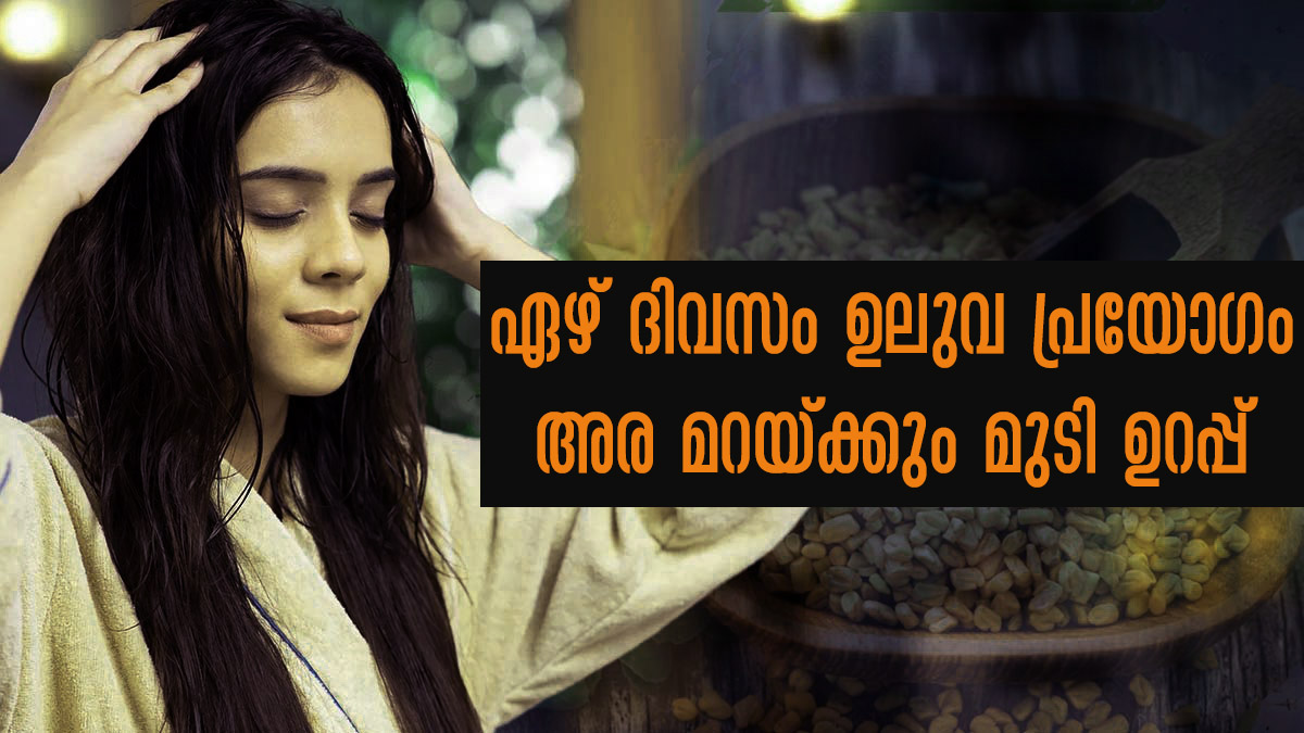 ദിവസം 7: ഉലുവ ഒരു രാത്രി മുഴുവന് വെള്ളത്തില് കുതിര്ക്കുക. ഏഴാമത്തെ ദിവസം മുതല് മുകളില് പറഞ്ഞതുപോലെ തന്നെ വീണ്ടും നാല് ആഴ്ചയോളം ആവര്ത്തിക്കുക. ഏകദേശം ഒരു മാസത്തിനുള്ളില് മുടിയിലുണ്ടാവുന്ന മാറ്റങ്ങള് നിങ്ങളെ തന്നെ അത്ഭുതപ്പെടുത്തും എന്നതില് സംശയിക്കേണ്ടതില്ല. ഉലുവ ഉപയോഗിക്കുന്നതോടൊപ്പം തന്നെ മുടി കൊഴിച്ചില് പ്രതിരോധിച്ച് ആരോഗ്യമുള്ള മുടി വളരുന്നതിന് വേണ്ടി ആരോഗ്യകരമായ ഭക്ഷണക്രമം പിന്തുടരുക. കൂടാതെ സമ്മര്ദ്ദം കുറയ്ക്കുകയും ആരോഗ്യത്തൊടെ മുന്നോട്ട് പോവുകയും ചെയ്യുക.