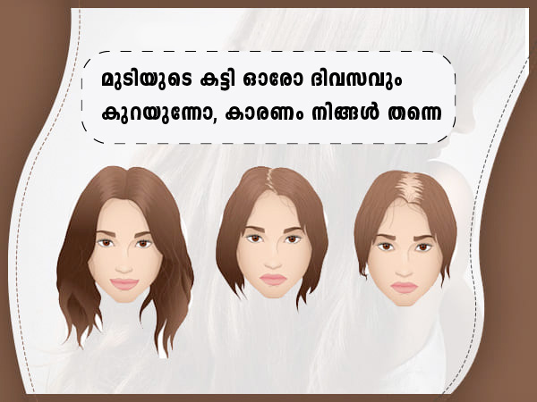 മുടിയുടെ കട്ടി കുറയുന്നത് നിങ്ങളറിയുന്നില്ലേ, കാരണങ്ങള് ഇതെല്ലാം