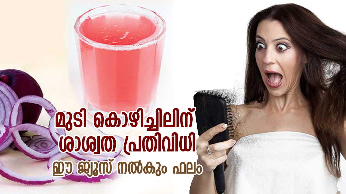 പാരിസ്ഥിതിക ഘടകങ്ങള്, പോഷകക്കുറവ്, താരന്, തലയോട്ടിയിലെ അണുബാധകള്, ഹോര്മോണ് മാറ്റങ്ങള്, മലിനീകരണം തുടങ്ങിയ വിവിധ പ്രശ്നങ്ങള് നിങ്ങളുടെ മുടി കൊഴിച്ചിലിനു കാരണമാകാം. എന്നാല് ഈ പ്രശ്നങ്ങളില് നിന്നു മോചനം നേടാന് സവാള നീര് നിങ്ങളെ സഹായിക്കും. ഒരു വലിയ സവാള ജ്യൂസ് ആക്കി അടിച്ചെടുത്ത് ഒരു കോട്ടണ് തുണിയില് മുക്കിവയ്ക്കുക. ഈ തുണി നിങ്ങളുടെ തലയോട്ടിയിലുടനീളം തേച്ച് ഏകദേശം 30 മിനിറ്റ് വിടുക. ശേഷം മൃദുവായ ഷാംപൂ ഉപയോഗിച്ച് മുടി കഴുകുക. ഒന്നിടവിട്ട ദിവസങ്ങളില് ഇത് ചെയ്യാവുന്നതാണ്.