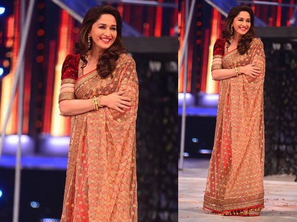 ക്രാന്ബെറി റെഡ് ആണ് മാധുരി ഇവിടെ ഉപയോഗിച്ചിരിക്കുന്ന ലിപ്സ്റ്റിക് നിറം. ബ്രൈറ്റ് കളര് മേയ്ക്കപ്പില് ഉപയോഗിക്കാവുന്ന നിറമാണിത്.