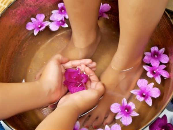 ഉപ്പ്, ചെറുനാരങ്ങാനീര്, ഗ്ലിസറിന്, പനിനീര് എന്നിവ ചെറുചൂടുള്ള വെള്ളത്തില് കലര്ത്തുക. കാല് ഈ വെള്ളത്തില് 15 മിനിറ്റ് ഇറക്കി വയ്ക്കണം. അല്പസമയം കഴിയുമ്പോള് ഉപ്പുറ്റിയിലെ തൊലി പ്യൂമിക് സ്്റ്റോണ് ഉപയോഗിച്ചോ സ്ക്രബര് ഉപയോഗിച്ചോ ഉരച്ചു കഴുകുക. കാലുകള് വൃത്തിയായി കഴുകി തുടയ്ക്കുക.