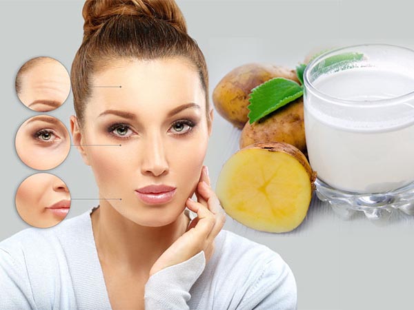 പ്രായമാകുന്നത് തടയാനും മുഖത്തെ ചുളിവുകള് കുറയ്ക്കാനും ഉരുളക്കിഴങ്ങ് ജ്യൂസ് സഹായിക്കും. തൈരുമായി ഉരുളക്കിഴങ്ങ് ജ്യൂസ് കലര്ത്തി മുഖത്ത് പതിവായി പുരട്ടുക. മുഖത്തെ ചുളിവുകള് കുറയുന്നത് നിങ്ങള്ക്ക് കാണാനാകും. ചുളിവുകളുടെ രൂപം കുറയ്ക്കുന്നതിനും മുഖത്തിന് യുവത്വ തിളക്കം നല്കുന്നതിനും ഒരു കോട്ടണ് തുണി ഉപയോഗിച്ച് നിങ്ങളുടെ മുഖത്ത് ഉരുളക്കിഴങ്ങ് ജ്യൂസ് ദിവസവും പുരട്ടുക.