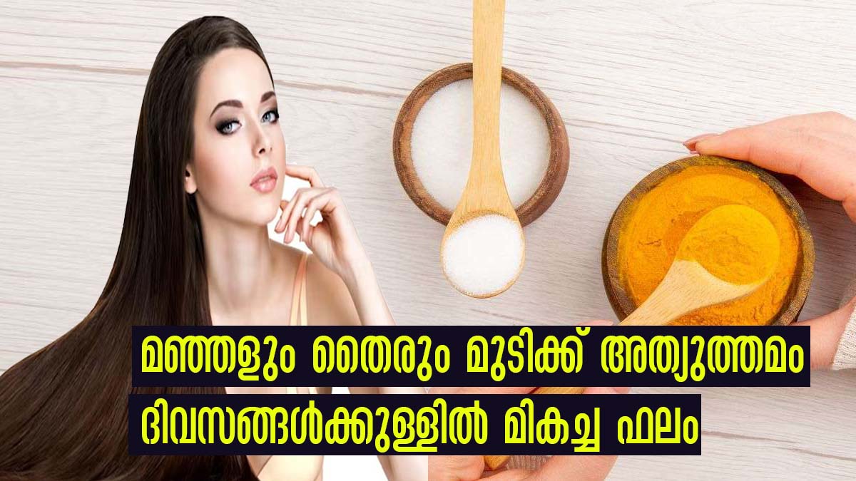 മുടിയുടെ ആരോഗ്യത്തിന് വേണ്ടി മഞ്ഞള്പ്പൊടിയും തേനും ഉപയോഗിക്കുന്നതും മുടിക്ക് കരുത്ത് നല്കുന്നു. അതിന് വേണ്ടി 2 സ്പൂണ് മഞ്ഞള്പ്പൊടി ഒരു സ്പൂണ് തേനും കുറച്ച് പാലും ചേര്ത്ത് മിനുസമാര്ന്ന പേസ്റ്റ് ഉണ്ടാക്കുക. ഈ മിശ്രിതം നിങ്ങളുടെ തലയോട്ടിയിലും മുടിയിലും മുഴുവന് മൃദുവായി മസാജ് ചെയ്യുക. 20 മിനിറ്റിന് ശേഷം വീര്യം കുറഞ്ഞ ഷാമ്പൂ ഉപയോഗിച്ച് ഇളം ചൂടുവെള്ളത്തില് കഴുകിക്കളയാവുന്നതാണ്. ഇത് മുടി വളരുന്നതിനും ഈര്പ്പം നിലനിര്ത്തുന്നതിനും സഹായിക്കുന്നു. മുടി കൊഴിച്ചില് അകറ്റുകയും ചെയ്യുന്നു.
