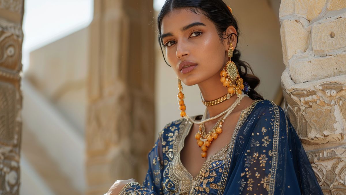 നേവി ബ്ലൂയുമായി ജോടിയാക്കുമ്പോള് സ്വര്ണ്ണനിറം ആഡംബരത്തിന്റെ ഒരു സ്പര്ശം നല്കുന്നു. സ്വര്ണ്ണത്തിന്റെ സമ്പന്നത നാവികസേനയുടെ ആഴത്തിലുള്ള നിറത്തെ പൂര്ത്തീകരിക്കുന്നു, ഇത് ഗംഭീരവും സങ്കീര്ണ്ണവുമായ രൂപം സൃഷ്ടിക്കുന്നു. ഈ കോമ്പിനേഷന് ഫോര്മല് അവസരങ്ങള്ക്കും മറ്റേക് അവസരത്തിനും അനുയോജ്യമാണ്.