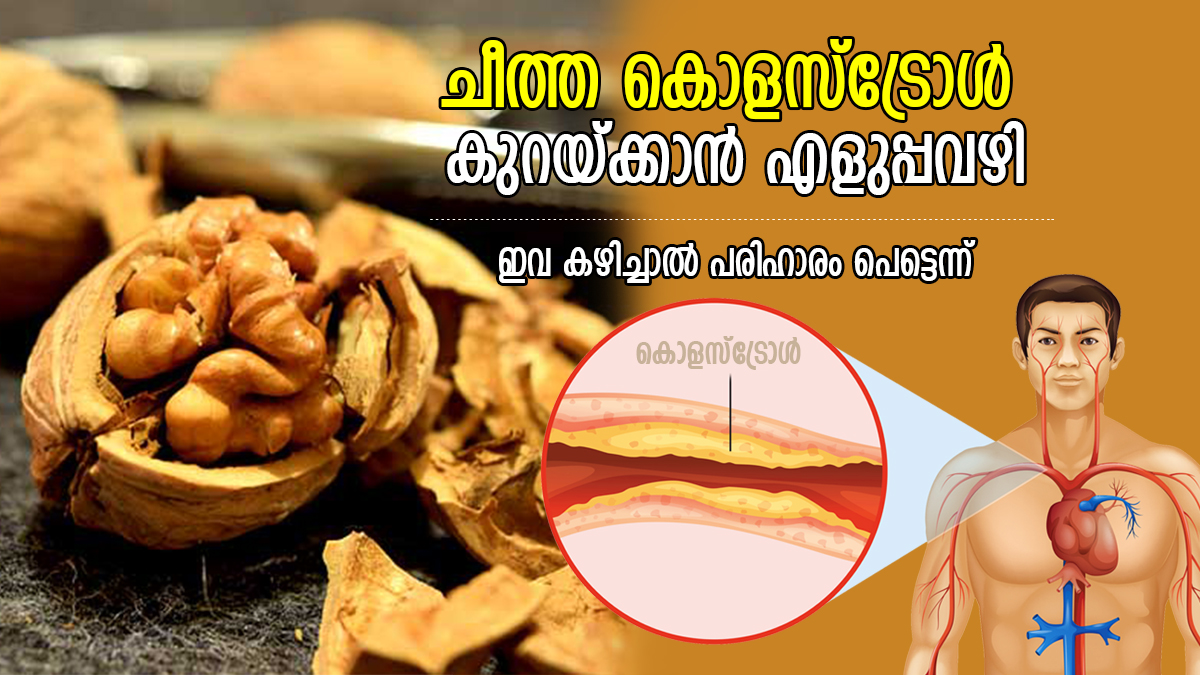 വാല്നട്ടില് അപൂരിത കൊഴുപ്പ് കൂടുതലും പൂരിത കൊഴുപ്പ് കുറവുമാണ്. ഇതില് വലിയ അളവില് ഒമേഗ-3യും അടങ്ങിയിട്ടുണ്ട്. വെറും വയറ്റില് 10-15 വാല്നട്ട് കഴിക്കുന്നത് ശരീരത്തിലെ അധിക കൊളസ്ട്രോള് കുറയ്ക്കും. കൂടാതെ, എച്ച്ഡിഎല് കൊളസ്ട്രോള് വര്ദ്ധിപ്പിക്കുകയും ചെയ്യും. ഇത് നിങ്ങളുടെ ഹൃദയത്തെ ആരോഗ്യകരമായി നിലനിര്ത്തും.