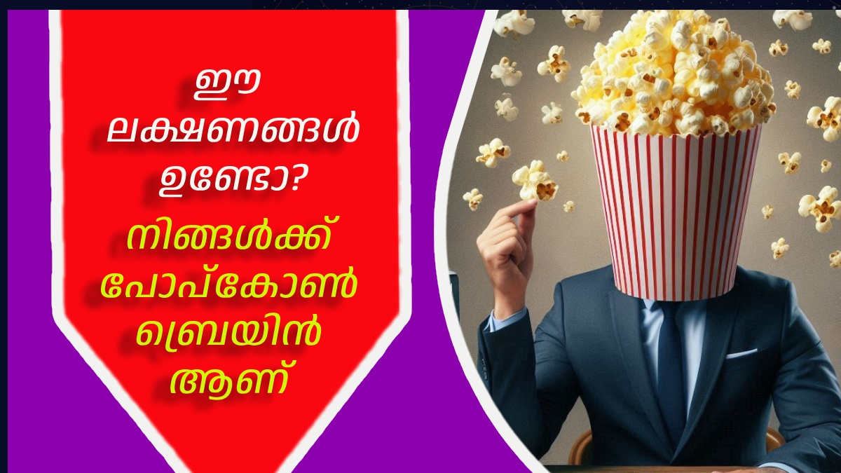 പോപ്കോണ് ഉണ്ടാക്കുന്നത് കണ്ടിട്ടില്ലേ. ഒരേസമയം നുറുകണക്കിന് പോപ്കോണുകള് ആണ് ചോളമണികളില് നിന്നും പൊരിഞ്ഞുവരിക. അതുപോലെ ഒരേസമയം ഒന്നിന് പിറകേ ഒന്നായി നിരവധി ചിന്തകള് മനസ്സിലൂടെ കടന്നുപോകുക, അല്ലെങ്കില് പലതരം മാനസികാവസ്ഥകളിലൂടെ കടന്നുപോകുന്നതിനെയാണ് പോപ്കോണ് ബ്രെയിന് എന്ന് വിശേഷിപ്പിക്കുന്നത്. താരതമ്യേന പുതിയൊരു പദമാണിത്. മിക്കവാറും എല്ലാ പ്രായക്കാരിലും ഈ അവസ്ഥ ഉണ്ടാകുന്നുണ്ട്. ഘടനാപരമായ ഒരു ചിന്ത ഇവിടെ ഉണ്ടാകുന്നില്ല. ഒരുകാര്യത്തിലും അധികമായി ശ്രദ്ധ കേന്ദ്രീകരിക്കാതെ അടുത്തതിലേക്ക് പോകാനുള്ള ഒരു ത്വര ഇവിടെ രൂപപ്പെടുന്നു. ഇത് ആരോഗ്യത്തെ പല രീതിയിലും ബാധിക്കുന്നുണ്ട്.