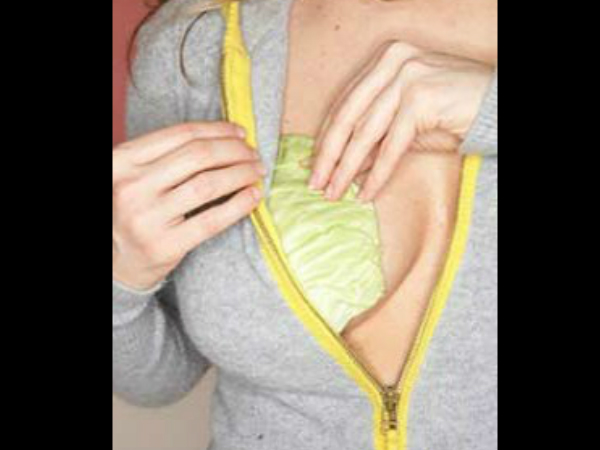 ഇത് കഴുകി തുടച്ച ശേഷം മാറിടത്തില് വയ്ക്കാം. നിപ്പിളുകള് മൂടരുത്. ഇത് വച്ച് ബ്രാ ധരിയ്ക്കാം. ഇത് മാറില്ത്തന്നെ ഉറച്ചിരിയ്ക്കും. image courtesy