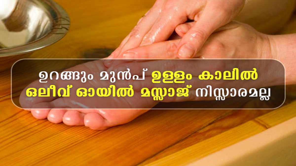 ഉറങ്ങുന്നതിനുമുമ്പ്, നിങ്ങളുടെ പാദങ്ങള് നന്നായി വൃത്തിയാക്കുക. പിന്നീട് നിങ്ങളുടെ കിടക്കയില് കാലുകള് മുന്പില് നീട്ടി ഇരിക്കുക. കുറച്ച് തുള്ളി ഒലിവ് ഓയില് എടുത്ത് നിങ്ങളുടെ പാദങ്ങളുടെ ഉള്ഭാഗത്ത് നല്ലതുപോലെ മസാജ് ചെയ്യുക. നിങ്ങളുടെ പാദങ്ങളിലും കാല്വിരലുകള്ക്കിടയിലും മുന്ഭാഗത്തും എണ്ണ പുരട്ടുക. ഓരോ വിരലും മൃദുവായി അമര്ത്തി വേണം മസ്സാജ് ചെയ്യുന്നതിന്. ഇത് കൂടാതെ കൂടുതല് ഫലപ്രാപ്തിക്കായി കുറഞ്ഞത് 5-10 മിനിറ്റെങ്കിലും മസാജ് ചെയ്യുന്നത് തുടരുക. ഇതില് അല്പം ചെറുചൂടുള്ള എണ്ണ ഉപയോഗിച്ച് മസ്സാജ് ചെയ്യുന്നത് എന്തുകൊണ്ടും നല്ലതാണ്. എന്നാല് അധിക എണ്ണ ഉണ്ടെങ്കില് അത് തുടച്ച് മാറ്റുന്നതിന് ശ്രദ്ധിക്കേണ്ടതാണ്. എന്തൊക്കെയാണ് ഇതിന്റെ ഗുണങ്ങള് എന്ന് നമുക്ക് നോക്കാവുന്നതാണ്.