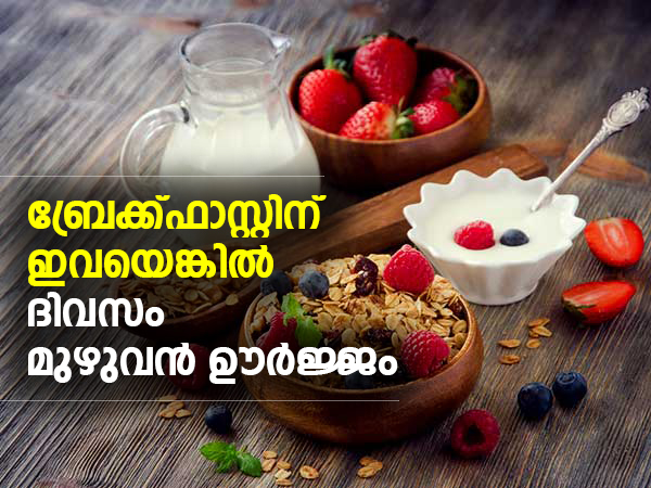വാസ്തവത്തില്, ഒരു അനാരോഗ്യകരമായ പ്രഭാതഭക്ഷണം കഴിക്കുന്നതിനേക്കാള് നല്ലത് പ്രഭാതഭക്ഷണം ഒഴിവാക്കുന്നതാണ്. എന്നിരുന്നാലും, പോഷകസമൃദ്ധവും സമീകൃതവുമായ പ്രഭാതഭക്ഷണം നിങ്ങള്ക്ക് ഊര്ജ്ജം നല്കുകയും മറ്റു നേരങ്ങളില് അമിതമായി ഭക്ഷണം കഴിക്കുന്നത് തടയുകയും ചെയ്യുന്നു. പ്രഭാതഭക്ഷണത്തില് നിങ്ങളുടെ ശരീരത്തിന് ഊര്ജ്ജം പകരുന്ന മികച്ച ചില ഭക്ഷണങ്ങള് ഇതാ. ബ്രേക്ക്ഫാസ്റ്റില് ഈ ഭക്ഷണങ്ങള് ഉള്പ്പെടുത്തുന്നത് ഒരു ദിവസം മുഴുവന് നിങ്ങളെ മികച്ചതായി നിലനിര്ത്തുകയും ആരോഗ്യം നല്കുകയും ചെയ്യുന്നു.