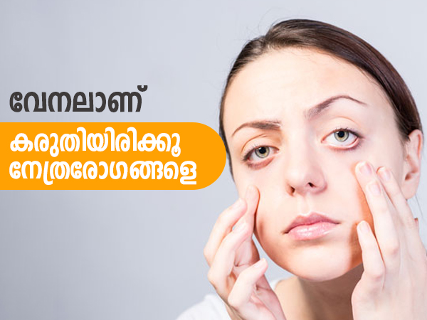 കണ്ണിനെ പ്രതികൂലമായി ബാധിക്കുന്നതും കാഴ്ച പ്രശ്നങ്ങള് ഉണ്ടാക്കുന്നതുമായ എല്ലാ ഘടകങ്ങളും വേനല്ക്കാലത്ത് കണ്ടുവരുന്നു. ചര്മ്മത്തെ സംരക്ഷിക്കാന് നിങ്ങള് സണ്സ്ക്രീനുകള് ഉപയോഗിക്കുമ്പോള് ശരീരത്തിന്റെ ഏറ്റവും പ്രധാനപ്പെട്ടതും അതിലോലവുമായ ഭാഗങ്ങളിലൊന്നായ കണ്ണുകളെ സംരക്ഷിക്കുന്നതില് നിന്നും വിട്ടുനില്ക്കരുത്. വേനല്ക്കാലത്ത് സാധാരണയായി കണ്ടുവരുന്ന ചില നേത്രരോഗങ്ങളും ഈ സീസണില് നിങ്ങളുടെ കണ്ണുകള് പരിപാലിക്കുന്നതിനുള്ള ചില നുറുങ്ങുകളും വായിക്കാം.