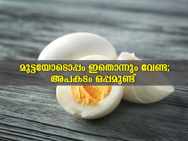 ആളുകള് സാധാരണയായി കഴിക്കുന്ന ഭക്ഷണങ്ങളിലൊന്ന് മുട്ടയാണ്, അത് വളരെ പോഷകഗുണമുള്ളതും ഒരു ചെറിയ ഭക്ഷണവുമാണ് എന്നത് നമുക്കെല്ലാം അറിയാം. പ്രോട്ടീന്, വിറ്റാമിനുകള്, ധാതുക്കള് എന്നിവ അടങ്ങിയ മുട്ട കുറഞ്ഞ കാര്ബ് ഭക്ഷണമാണ്. എന്നാല് മുട്ടയിലൂടെ ആരോഗ്യം നല്കുമെങ്കിലും നമുക്ക് ചില ഭക്ഷണങ്ങളോടൊപ്പം മുട്ട കഴിക്കാന് പാടില്ല. എന്തൊക്കെ ഭക്ഷണങ്ങളാണ് മുട്ടയോടൊപ്പം കഴിക്കാന് പാടില്ലാത്തത് എന്ന് നമുക്ക് നോക്കാവുന്നതാണ്. കൂടുതല് അറിയുന്നതിന് വേണ്ടി വായിക്കൂ.