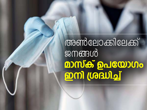 ലോക്ക്ഡൗണ് നീക്കുന്നതിനാല്, ഫെയ്സ് മാസ്കുകള് ധരിക്കേണ്ടതിന്റെ ആവശ്യകതയും ഉപയോഗിക്കേണ്ട വിധവും കൃത്യമായി അറിയേണ്ടത് പ്രധാനമാണ്. എന്നാല് മാസ്കുകളുടെ ഉപയോഗത്തിലൂടെ മാത്രം കൊറോണ വൈറസില് നിന്ന് രക്ഷനേടാന് ആവില്ലെന്നു കൂടി ഓര്ക്കുക. നിങ്ങള് മറ്റുള്ളവരില് നിന്ന് ഒരു മീറ്ററെങ്കിലും അകലം പാലിക്കുകയും കൈകള് പതിവായി നന്നായി കഴുകി ശുചിത്വം പാലിക്കുകയും വേണം.