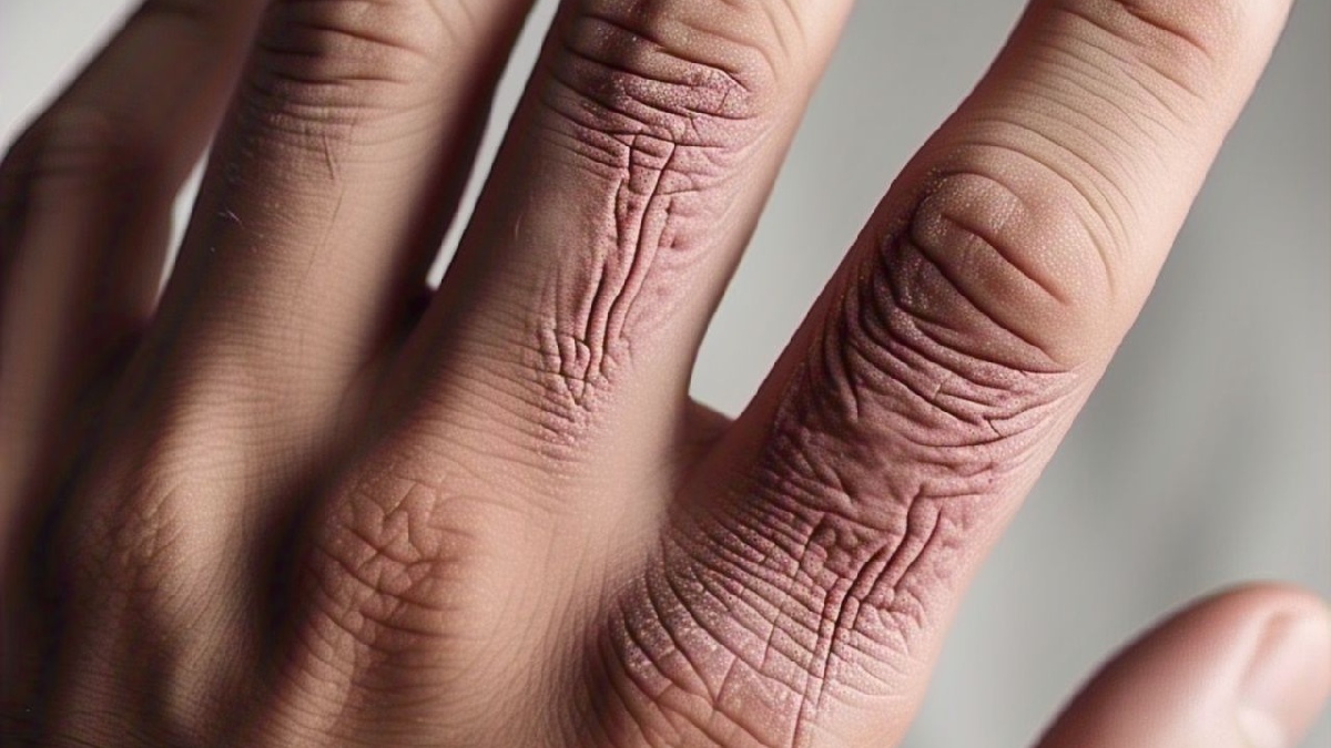 വരണ്ടതും പൊട്ടുന്നതുമായ ചർമ്മം കാണപ്പെടുന്നു. എക്സിമ ചർമ്മം വരണ്ടതും പൊട്ടുന്നതുമാക്കുന്നു. ഇത് അണുബാധകൾക്ക് കാരണമാകും.