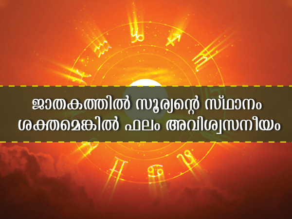 ജാതകവും ജ്യോതിഷവും പലരും വിശ്വസിക്കുന്നതാണ്. എന്നാല് ഇതില് ഓരോ ഗ്രഹങ്ങളുടേയും സ്ഥാനത്തിനുള്ള പ്രാധാന്യം പലര്ക്കും അറിയില്ല. നവഗ്രഹങ്ങളില് സൂര്യന്റെ സ്ഥാനം നിങ്ങളുടെ ജാതകത്തില് വളരെ വലിയ പങ്കാണ് വഹിക്കുന്നത്. നിങ്ങളുടെ ജാതകത്തില് സൂര്യന് ശക്തനാണെങ്കില് അത് നിങ്ങള്ക്ക് നല്കുന്ന ഫലങ്ങള് നിസ്സാരമല്ല. കാരണം വളരെ ശക്തനായ ഗ്രഹമാണ് സൂര്യന്. അതുകൊണ്ട് തന്നെ സൂര്യന് ശക്തനായി നിങ്ങളുടെ ജാതകത്തില് നില കൊള്ളുന്നുവെങ്കില് അതിന്റെ ഗുണം നിങ്ങള്ക്ക് ലഭിക്കുന്നു.