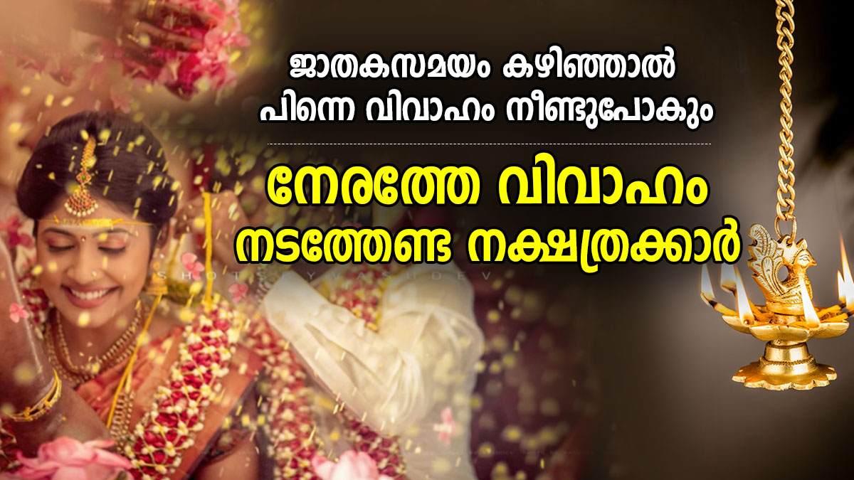 ജാതകപ്രകാരം ചില പ്രത്യേക സമയത്ത് വിവാഹം നടത്തുന്നത് ശുഭകരമായി കണക്കാക്കുന്നു. എന്നാല് പല കാരണങ്ങളാല് അത് കൃത്യമായി നടക്കണമെന്നില്ല. വിവാഹം നീണ്ടുപോയേക്കാം. ജീവിതം ഒരു കരയ്ക്കെത്തിച്ച ശേഷം വിവാഹത്തിനായി പങ്കാളിയെ തേടി ഇറങ്ങിയാല് ചിലപ്പോള് ലഭിക്കണമെന്നില്ല. ഒരു പ്രായം കഴിഞ്ഞാല് നല്ല പങ്കാളിയെ കിട്ടിയെന്ന് വരില്ല. ഇത് പലരുടെയും അനുഭവമാണ്. ശരിയായ സമയത്ത് ജാതകപ്രകാരം വിവാഹം നടത്തിയില്ല എങ്കില് ജ്യോതിഷപ്രകാരം ചില നക്ഷത്രക്കാര്ക്ക് വൈകി മാത്രമേ വിവാഹം നടക്കൂ. അത് ഓരോരുത്തരുടെയും ജാതകപ്രകാരം വ്യത്യാസപ്പെടാം. ഇവിടെ പറയുന്ന കാര്യങ്ങള് പൊതുഫലം പ്രകാരമാണ്.