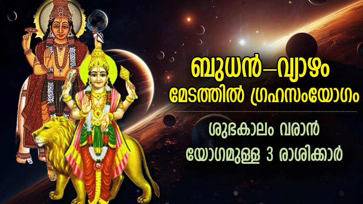 ജ്യോതിഷ പ്രകാരം ഒരു നിശ്ചിത ഇടവേളയ്ക്ക് ശേഷം ഗ്രഹങ്ങള് മറ്റ് ഗ്രഹങ്ങളുമായി സംയോജിക്കുന്നു. മനുഷ്യജീവിതത്തിലും ഭൂമിയിലും ഇതിന്റെ സ്വാധീനം ദൃശ്യമാകുന്നു. ഇപ്പോള് വ്യാഴം മേടം രാശിയിലാണ് സഞ്ചരിക്കുന്നത്. ബുധന് ഗ്രഹം മാര്ച്ച് ആദ്യം മേടം രാശിയില് പ്രവേശിക്കും. അതുമൂലം മീനരാശിയില് വ്യാഴത്തിന്റെയും ബുധന്റെയും സംയോഗം രൂപപ്പെടും.