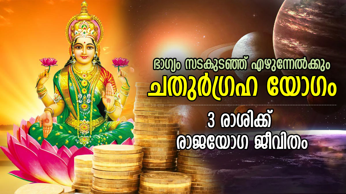 എന്നാല് 3 രാശിക്കാര്ക്ക് ഈ യോഗഫലത്താല് പ്രത്യേക നേട്ടങ്ങള് ലഭിക്കും. ഈ സമയത്ത് നിങ്ങള്ക്ക് സാമ്പത്തികമായി പുരോഗതിക്കും കരിയറില് ഉയര്ച്ചയ്ക്കും സാധ്യതയുണ്ട്. ചതുര്ഗ്രഹ യോഗ ഫലത്താല് ഈ കാലയളവില് നേട്ടം ലഭിക്കുന്ന ഭാഗ്യ രാശികള് ആരൊക്കെയാണെന്ന് നമുക്ക് നോക്കാം.