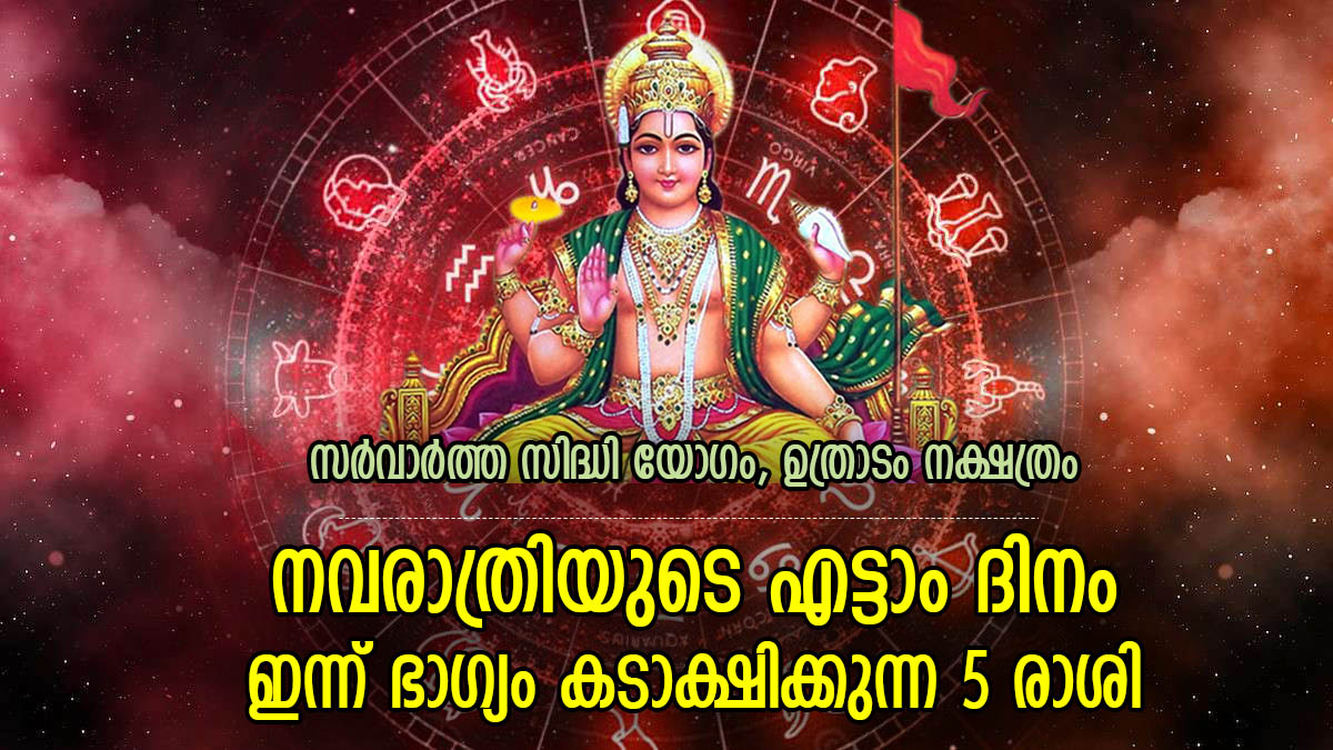 ഒക്ടോബര് 22 ചന്ദ്രന് ശനിയുടെ രാശിയായ മകരം രാശിയിലേക്ക് മാറുന്നു. ഇതോടൊപ്പം ബുധാദിത്യയോഗം, സര്വാര്ത്ത സിദ്ധിയോഗം, രവിയോഗം, ധൃതിമാന് യോഗം, ഉത്രാടം നക്ഷത്രം എന്നിവയുടെ ശുഭകരമായ സംയോജനവും ശാരദിയ നവരാത്രിയുടെ എട്ടാം ദിവസമായ ഇന്ന് രൂപപ്പെടുന്നു. നവരാത്രിയുടെ എട്ടാം നാളില് ഈ മംഗളകരമായ യോഗങ്ങള് രൂപപ്പെട്ടതിനാല് ഇന്നത്തെ ദിവസത്തിന്റെ പ്രാധാന്യം ഗണ്യമായി വര്ദ്ധിച്ചതായി ജ്യോതിഷത്തില് പറയുന്നു.