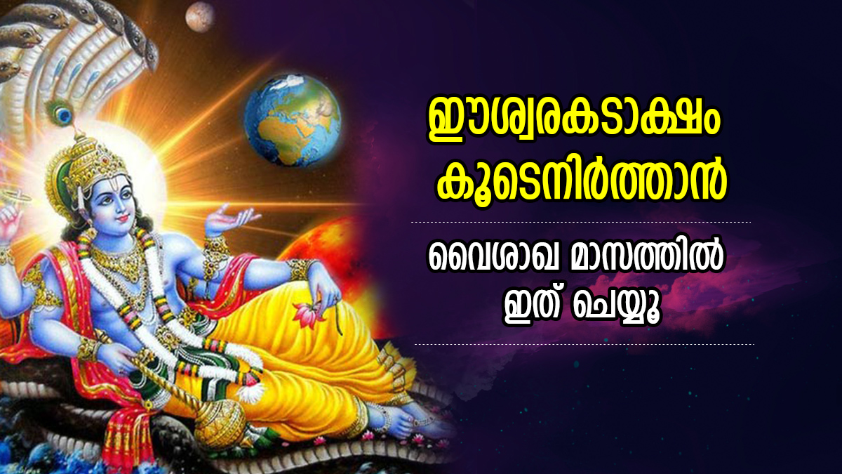 വിഷ്ണുവിനെ ആരാധിക്കുന്നതിനും അനുഗ്രഹം നേടാനും ഉത്തമമായ മാസമാണ് വൈശാഖ മാസം. ഈ മാസത്തില് പുണ്യസ്നാനം ചെയ്യുന്നത് വളരെ ഐശ്വര്യമായി കണക്കാക്കുന്നു. വിശ്വാസമനുസരിച്ച്, ഈ മാസത്തില് നിങ്ങള് മഹാവിഷ്ണുവിനെ ആരാധിച്ചാല്, നിങ്ങളുടെ കഷ്ടപ്പാടുകളില് നിന്ന് നിങ്ങള്ക്ക് ആജീവനാന്ത ആശ്വാസം ലഭിക്കും.