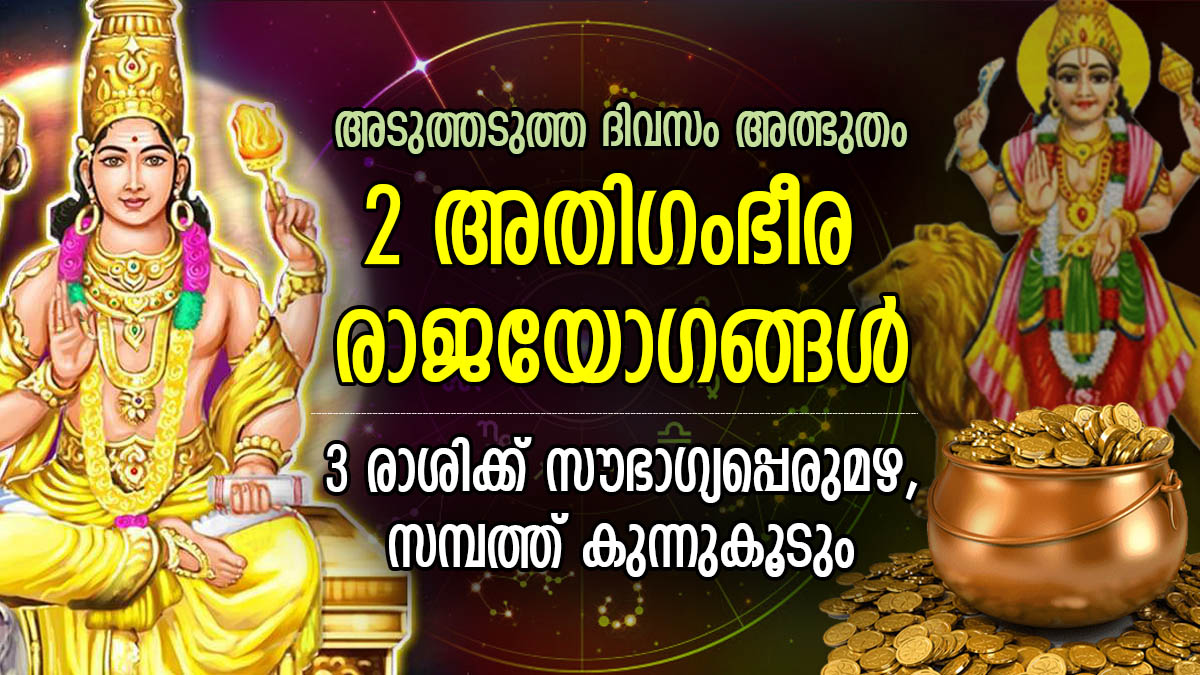 ചില്ലറ നേട്ടമല്ല വരുന്നത്, രണ്ട് ഗംഭീര രാജയോഗങ്ങള് അടുത്തടുത്ത്; 3 രാശിക്ക് ജീവിതം രാജതുല്യം