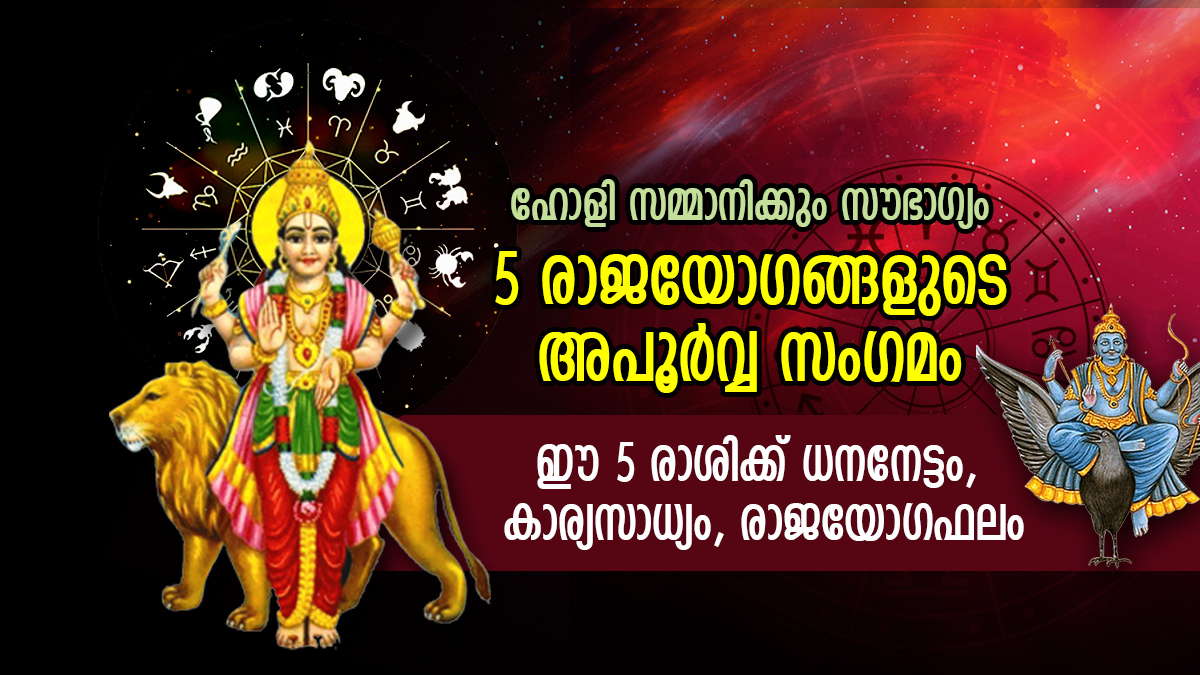 5 രാജയോഗങ്ങളുടെ അപൂര്വ സംയോഗം; അത്ഭുത സൗഭാഗ്യങ്ങള്, ഹോളി മുതല് ഒരുമാസക്കാലം ഈ 5 രാശിക്ക് രാജയോഗം