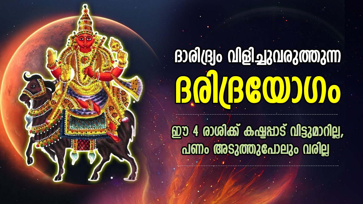 ഗ്രഹങ്ങളുടെ ചലനങ്ങള് രാശികളെ സ്വാധീനിക്കുന്ന തരത്തില് അനുകൂലവും പ്രതികൂലവുമായ സാഹചര്യങ്ങള് സൃഷ്ടിക്കുന്നു. ചൊവ്വ കര്ക്കിടകം രാശിയിലേക്ക് മാറുന്ന ഈ സമയത്ത് ദരിദ്രയോഗം രൂപപ്പെടുന്നു. ജ്യോതിഷത്തില് ദരിദ്ര യോഗത്തെ അശുഭകരമായ യോഗമായി കണക്കാക്കുന്നു. ജാതകത്തില് ഈ യോഗമുള്ളവര്ക്ക് ജീവിതത്തില് നിരവധി വെല്ലുവിളികള് നേരിടേണ്ടി വന്നേക്കാം. ഈ കാലയളവില്, ചൊവ്വയുടെ സംക്രമണം സൃഷ്ടിക്കുന്ന ദരിദ്ര യോഗത്തിന്റെ സ്വാധീനം നാല് രാശികളില് ദൃശ്യമാകും. ആ രാശിക്കാര് ആരൊക്കെയെന്ന് നമുക്ക് നോക്കാം.