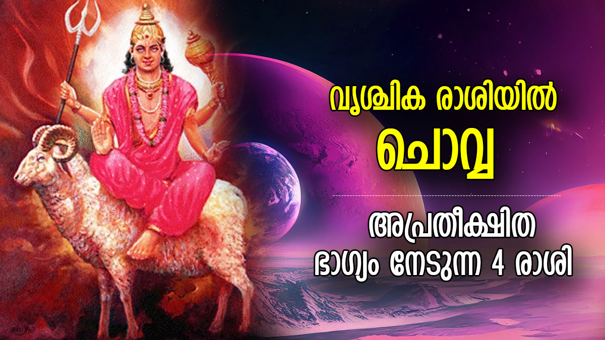 ഈ സംക്രമണം പല രാശിക്കാര്ക്കും വളരെ ശുഭകരമായ ഫലങ്ങള് നല്കും. ഇത്തവണ ചൊവ്വ രാശി മാറുമ്പോള് മൂന്ന് രാശിക്കാരുടെയും ഭാഗ്യം മാറിമറിയും. ഇവര്ക്ക് ജീവിതത്തില് ധാരാളം ശുഭകരമായ നേട്ടങ്ങള് ലഭിക്കും. വൃശ്ചിക രാശിയിലേക്ക് ചൊവ്വ കടക്കുമ്പോള് ഭാഗ്യം തെളിയുന്ന രാശിക്കാര് ആരൊക്കെയാണെന്ന് നമുക്ക് നോക്കാം.