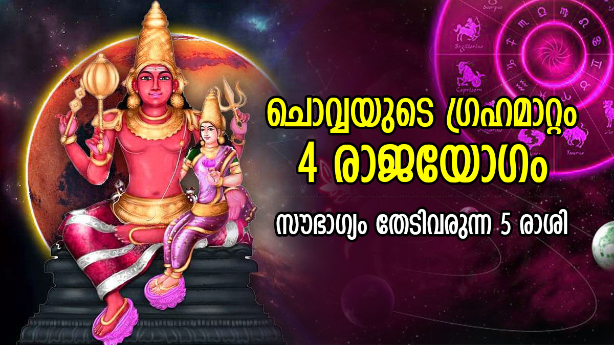 ചൊവ്വയുടെ ഈ രാശിമാറ്റത്തിന്റെ ഫലം 5 രാശിക്കാര്ക്ക് അനുകൂലമായിരിക്കും. ഈ കാലയളവില് നിങ്ങള്ക്ക് സാമ്പത്തികമായും തൊഴില്പരമായും നല്ല സമയമായിരിക്കും. ജീവിതത്തില് ധാരാളം ഗുണാനുഭവങ്ങളും നിങ്ങളെ തേടിയെത്തും. ചൊവ്വയുടെ രാശിമാറ്റത്താല് രൂപപ്പെടുന്ന രാജയോഗങ്ങള് കാരണം ജീവിതം മെച്ചപ്പെടുന്ന ആ ഭാഗ്യ രാശിക്കാര് ആരൊക്കെയാണെന്ന് നമുക്ക് നോക്കാം.