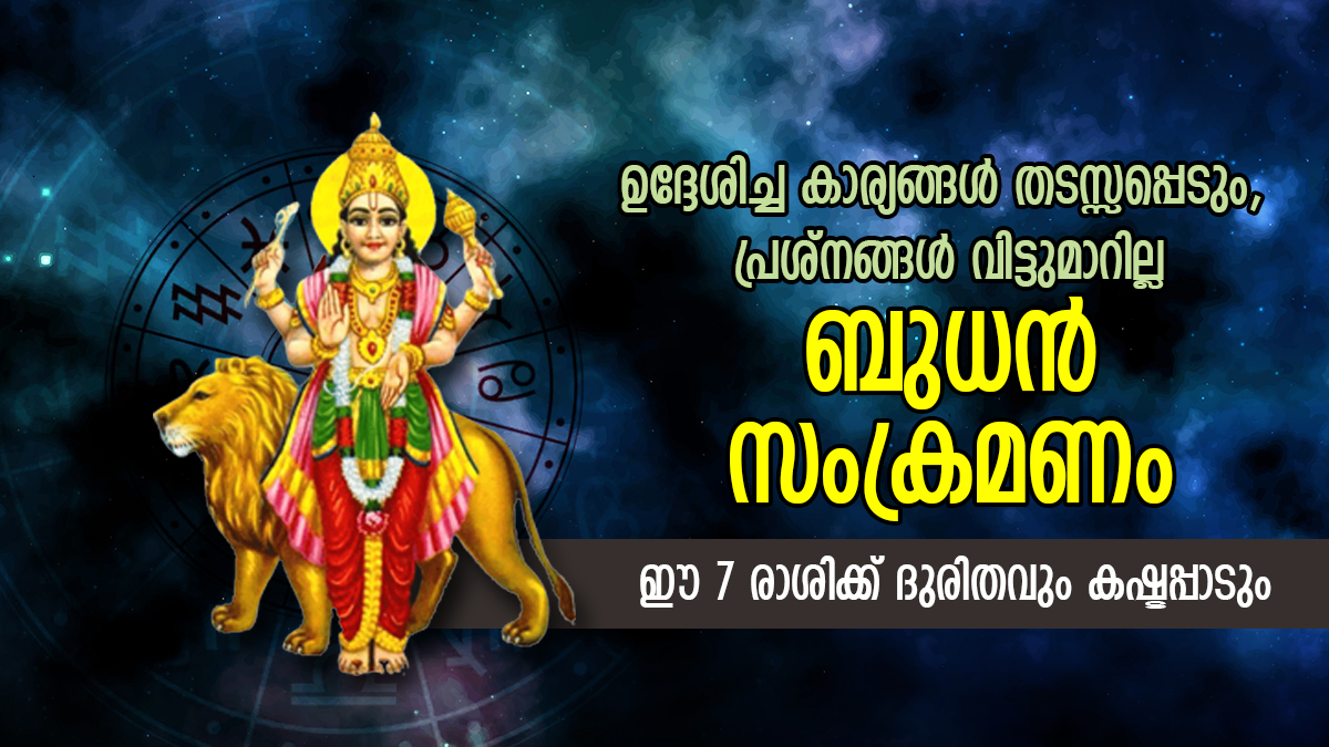 ബുധന്റെ ഈ രാശിമാറ്റം ചില രാശിക്കാര്ക്ക് പ്രശ്നങ്ങള് സൃഷ്ടിക്കും. മേടം, മിഥുനം, ചിങ്ങം തുടങ്ങി 7 രാശിക്കാര്ക്ക് ഇത് അപകടം പിടിച്ച കാലയളവാണ്. അവര്ക്ക് തൊഴില്, പണം, ആരോഗ്യം മുതലായവയുമായി ബന്ധപ്പെട്ട കാര്യങ്ങളില് നഷ്ടം സംഭവിച്ചേക്കാം. ബുധ സംക്രമണം ഈ രാശിക്കാരെ പ്രതികൂലമായി ബാധിക്കും.