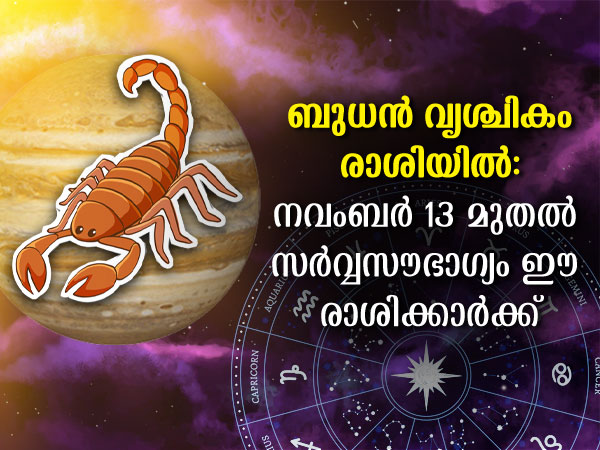 Budh Gochar 2022 : ബുധന് വൃശ്ചികം രാശിയില്: നവംബര് 13 മുതല് സര്വ്വസൗഭാഗ്യം ഈ രാശിക്കാര്ക്ക്