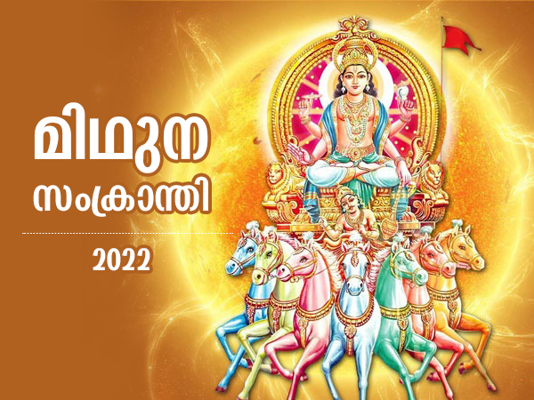 സൂര്യന്റെ രാശിമാറ്റം മൂലം ജ്യോതിഷ പ്രകാരം, നക്ഷത്രരാശികളിലും വലിയ മാറ്റം സംഭവിക്കുന്നു. മിഥുന രാശിയില് സൂര്യന് പ്രവേശിക്കുന്നത് മഴക്കാലത്തിന്റെ തുടക്കത്തിന്റെ സൂചനയായി കണക്കാക്കപ്പെടുന്നു എന്ന് നമുക്ക് പറയാം. സൂര്യന്റെ മിഥുനം രാശി മാറ്റം ആരോഗ്യത്തെയും ബാധിക്കുന്നു. ഈ സമയത്ത്, വൈറല് രോഗങ്ങളുടെ സാധ്യത ഗണ്യമായി വര്ദ്ധിക്കുന്നു. അതിനാല്, നിങ്ങളെയും നിങ്ങളുടെ കുട്ടികളെയും പ്രത്യേകം ശ്രദ്ധിക്കുക. മിഥുന സംക്രാന്തിയുടെ മംഗളകരമായ സമയവും ആരാധനാ രീതിയും എങ്ങനെയെന്ന് നമുക്ക് നോക്കാം.