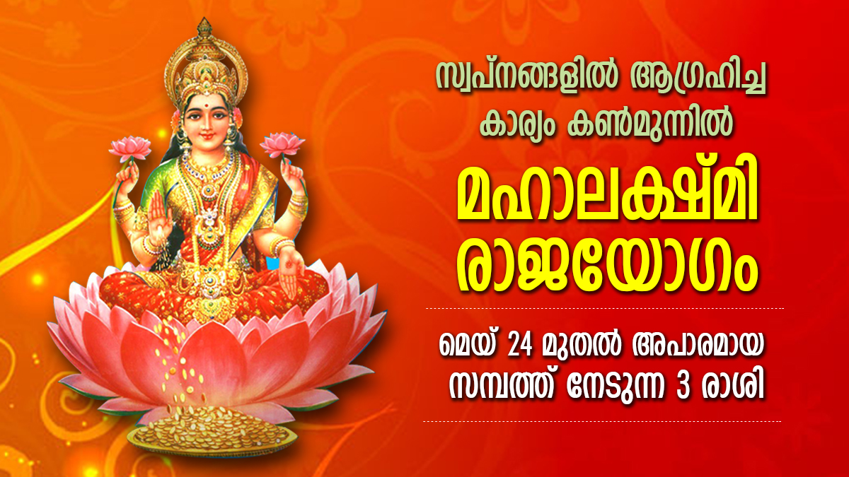 ചൊവ്വ ഇതിനകം കര്ക്കടക രാശിയില് തുടരുന്നുണ്ട്. ഇത്തരമൊരു സാഹചര്യത്തില് ചന്ദ്രന്റെയും ചൊവ്വയുടെയും സംയോജനം വളരെ ശുഭകരമായ മഹാലക്ഷ്മി രാജയോഗം സൃഷ്ടിക്കുന്നു. മെയ് 24ന് രൂപപ്പെടുന്ന മഹാലക്ഷ്മി രാജയോഗത്തിന്റെ ശുഭഫലം പല രാശിക്കാരുടെ ജീവിതത്തിലും ദൃശ്യമാകും. ഈ കാലയളവില് അളവറ്റ ഐശ്വര്യങ്ങള് ലഭിക്കുന്ന 3 രാശിക്കാരുണ്ട്. ഇവര്ക്ക് ഈ സമയം രാജയോഗതുല്യമായ ജീവിതമായിരിക്കും വരാന് പോകുന്നത്. മഹാലക്ഷ്മി രാജയോഗ ഫലത്താല് ശുഭഫലങ്ങള് കൈവരുന്ന 3 രാശിക്കാര് ഇവാരണ്.