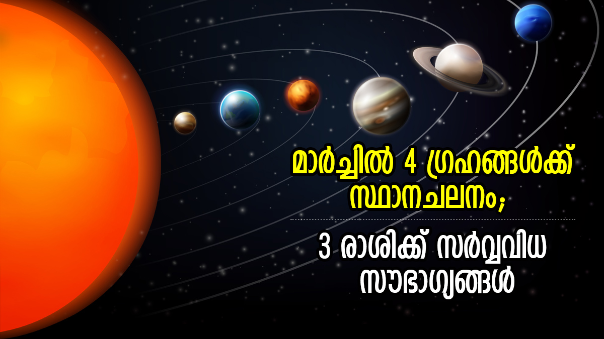 മാര്ച്ചില് 4 ഗ്രഹങ്ങള്ക്ക് സ്ഥാനചലനം; ഈ 3 രാശിക്ക് കിടിലന് സമയം, ഭാഗ്യനേട്ടങ്ങള് തേടിയെത്തും