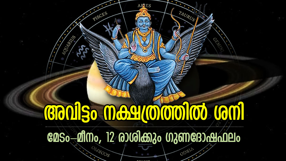 അവിട്ടം നക്ഷത്രത്തിന്റെ മൂന്നാം ഭാവത്തിലെ ശനി നിങ്ങളുടെ പരിശ്രമം, ശ്രദ്ധ, സ്ഥിരോത്സാഹം, ഇച്ഛാശക്തി എന്നിവ മെച്ചപ്പെടുത്തും. നേട്ടങ്ങള്ക്കായി നിങ്ങളുടെ ജോലിയിലും ബിസിനസ്സിലും റിസ്ക് എടുക്കാന് നിങ്ങള് ഇപ്പോള് തയ്യാറാകും. നിങ്ങളുടെ സഹോദരങ്ങളുമായുള്ള നിങ്ങളുടെ ബന്ധം മെച്ചപ്പെടും. ബിസിനസ്സ് യാത്രകള് നിങ്ങള്ക്ക് ഗുണം ചെയ്യും. പ്രതിവിധിയായി നിങ്ങള് ശനി ബീജ മന്ത്രം ചൊല്ലുക.