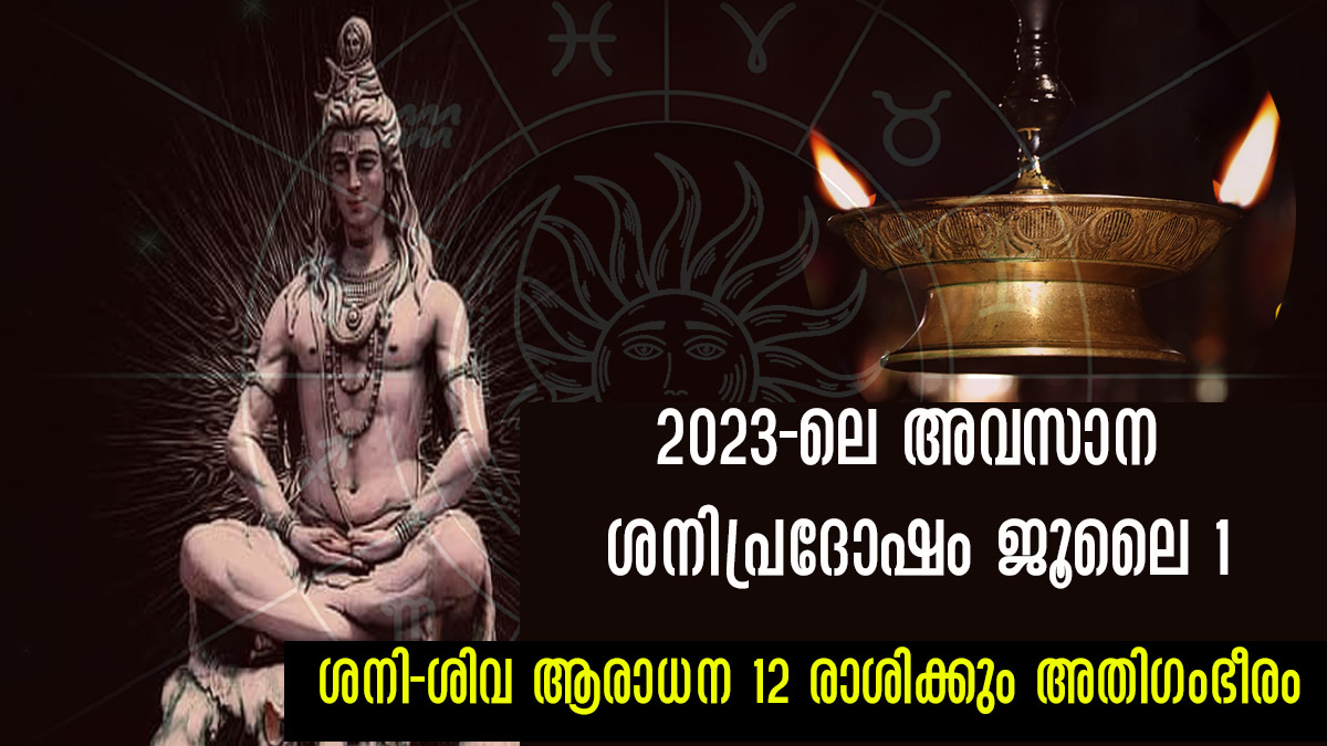 ആഷാഢ ശുക്ല ത്രയോദശി തിഥി 2023 ജൂലൈ 1 ന് രാത്രി 11:07 ന് അവസാനിക്കും. ശിവപൂജ സമയം 1 ജൂലൈ 2023 7:23 PM മുതല് 9:24 PM വരെയാണ് ഉള്ളത്. ഈ ശനി പ്രദോഷ ദിനത്തില് അവരുടെ ദോഷഫലങ്ങളെ ചെറുക്കുന്നതിന് വേണ്ടിയും ശനിപ്രദോഷത്തിന്റെ കോടിപുണ്യം ലഭിക്കുന്നതിന് വേണ്ടിയും എന്തൊക്കെയാണ് ചെയ്യേണ്ടത്, എന്തൊക്കെയാണ് അറിഞ്ഞിരിക്കേണ്ടത് എന്ന് നമുക്ക് നോക്കാവുന്നതാണ്. ഓരോ രാശിക്കാരും എപ്രകാരം ഈ ദിനത്തില് ശിവനേയും ശനിയേയും ആരാധിക്കണം എന്ന് നമുക്ക് നോക്കാം.