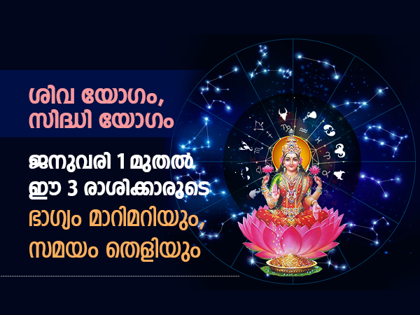 പഞ്ചാംഗം അനുസരിച്ച്, 2023 ജനുവരി 1ന് രണ്ട് ശുഭകരമായ യോഗങ്ങള് രൂപപ്പെടുന്നു. പഞ്ചാംഗ പ്രകാരം ഈ ദിവസം രാവിലെ 7:23 ന് ശിവയോഗവും അതിനുശേഷം സിദ്ധയോഗവും രൂപപ്പെടും. ഈ യോഗങ്ങള് വളരെ ശുഭകരമായി കണക്കാക്കപ്പെടുന്നു. ശിവത്തിലും സിദ്ധയോഗത്തിലും ചെയ്യുന്ന പ്രവൃത്തികള് സമ്പൂര്ണ ഫലം നല്കുമെന്ന് വിശ്വസിക്കപ്പെടുന്നു. ജ്യോതിഷ പ്രകാരം, ഗ്രഹങ്ങളുടെ ചലനം എല്ലാ രാശിചിഹ്നങ്ങളിലുമുള്ള ആളുകളെ ബാധിക്കുന്നു. 2023 പുതുവര്ഷ ദിനത്തിലെ ശുഭയോഗത്താല് സര്വ്വസൗഭാഗ്യം കൈവരുന്ന 3 രാശിക്കാരുണ്ട്. ആ രാശിക്കാര് ആരൊക്കെയെന്ന് നമുക്ക് നോക്കാം.