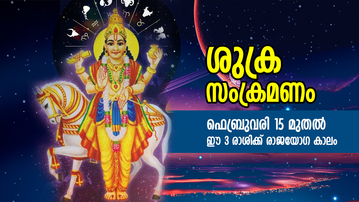 ജ്യോതിഷത്തില് ശുക്രന്റെ സംക്രമണം വളരെ പ്രാധാന്യത്തോടെ കണക്കാക്കപ്പെടുന്നു. ശുക്രന് ഒരു ശുഭഗ്രഹമാണ്, മീനം ശുക്രന്റെ ഉന്നതമായ രാശിയാണ്. എല്ലാവിധ ശാരീരിക സുഖങ്ങളും നല്കുന്ന ഗ്രഹമാണ് ശുക്രന്. ഫെബ്രുവരി 15ന് വ്യാഴത്തിന്റെ രാശിയില് ശുക്രന്റെ സംക്രമണം നടക്കുകയും അവിടെ ഇരിക്കുന്ന വ്യാഴവുമായി സംയോജിക്കുകയും ചെയ്യും.