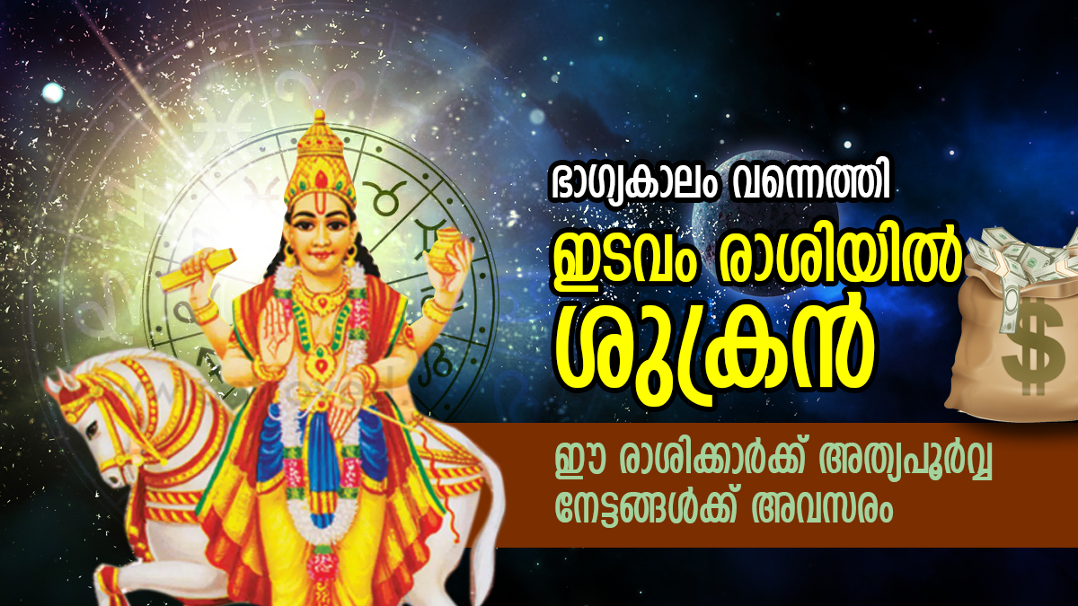 ജ്യോതിഷത്തില് ശാരീരിക സന്തോഷം, സ്നേഹം, സൗന്ദര്യം മുതലായവയുടെ കാരണ ഗ്രഹമായി ശുക്രനെ കണക്കാക്കുന്നു. ജാതകത്തില് ശുക്രന്റെ സ്ഥാനം ശക്തമാണെങ്കില് ജീവിതത്തില് ഒന്നിനും ഒരു കുറവുമുണ്ടാകില്ല. ഭാഗ്യത്തിന്റെ വാതിലുകള് നിങ്ങള്ക്കായി തുറക്കപ്പെടും. നേരെമറിച്ച്, ജാതകത്തില് ശുക്രന് ബലഹീനനാണെങ്കില്, നിങ്ങളുടെ ജീവിതത്തില് പല പ്രശ്നങ്ങളും അഭിമുഖീകരിക്കേണ്ടിവരും. ശുക്രന് ഒരു രാശിയില് നിന്ന് മറ്റൊരു രാശിയിലേക്ക് മാറുമ്പോള് അതിന്റെ സ്വാധീനം രാജ്യം, ലോകം, ബിസിനസ്സ്, കുടുംബം, സാമ്പത്തിക സ്ഥിതി എന്നിവയില് പ്രതിഫലിക്കും.