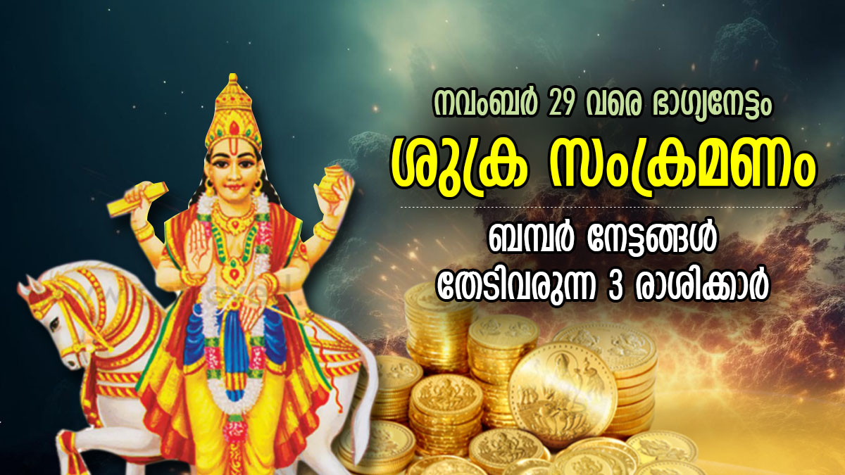 ജ്യോതിഷ പ്രകാരം ധനം, ഐശ്വര്യം, ആകര്ഷണം എന്നിവയുടെ ദാതാവായി ശുക്രനെ കണക്കാക്കുന്നു. ശുക്രന്റെ രാശിയിലെ മാറ്റം 12 രാശിക്കാരുടെ ജീവിതത്തിലും ഏതെങ്കിലും തരത്തില് സ്വാധീനം ചെലുത്തുന്നു. നവംബര് 3 ന് ശുക്രന് ബുധന്റെ രാശിയായ കന്നി രാശിയില് പ്രവേശിച്ചിരിക്കുന്നു. നവംബര് 29 വരെ ശുക്രന് ഈ രാശിയില് തുടരും. ഇതിനുശേഷം തുലാം രാശിയില് പ്രവേശിക്കും.