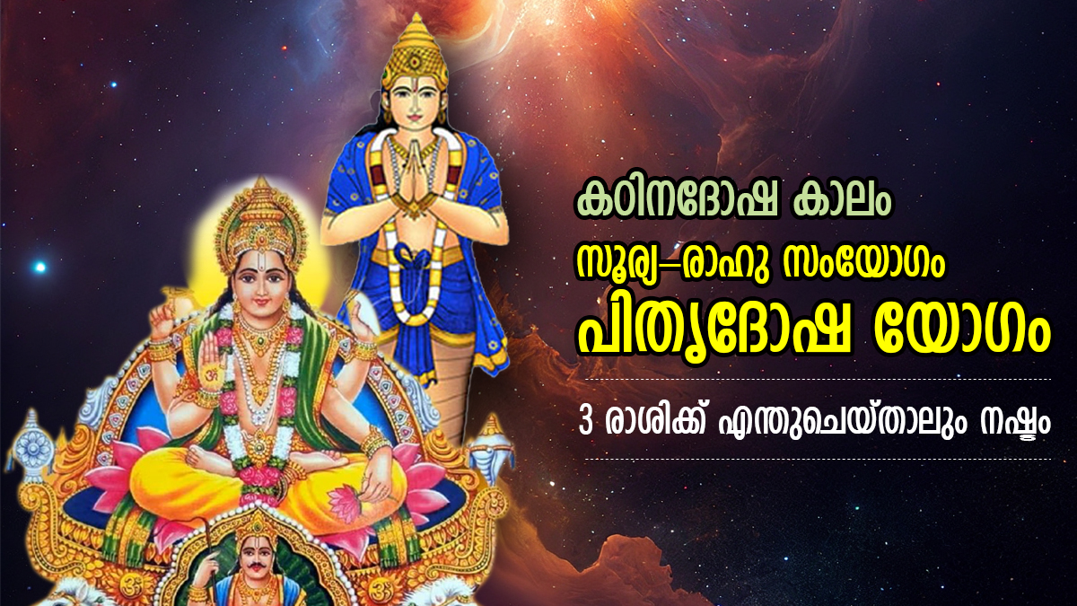 ഈ മാസം ഏപ്രില് 14ന് സൂര്യന് അതിന്റെ ഉന്നത രാശിയായ മേടരാശിയില് പ്രവേശിച്ചുകഴിഞ്ഞു. ഈ സാഹചര്യത്തില്, മേടം രാശിയില് ഇപ്പോള് സൂര്യന്റെയും രാഹുവിന്റെയും സംയോജനത്താല് പിതൃദോഷയോഗം രൂപംകൊണ്ടിട്ടുണ്ട്. ഈ അപകടകരമായ യോഗത്തിന്റെ ഫലം 12 രാശികളിലും പ്രതിഫലിക്കും. എന്നാല് പിതൃദോഷയോഗം മൂന്ന് രാശികളില് കനത്ത സ്വാധീനം ചെലുത്തും. അവര് ഒരു മാസത്തേക്ക് വളരെയേറെ ജാഗ്രത പാലിക്കേണ്ടതുണ്ട്. സൂര്യ രാഹു സംയോഗത്താല് രൂപപ്പെട്ട പിതൃദോഷയോഗത്താല് കഷ്ടപ്പെടുന്ന രാശിക്കാര് ആരൊക്കെയാണെന്ന് നമുക്ക് നോക്കാം.